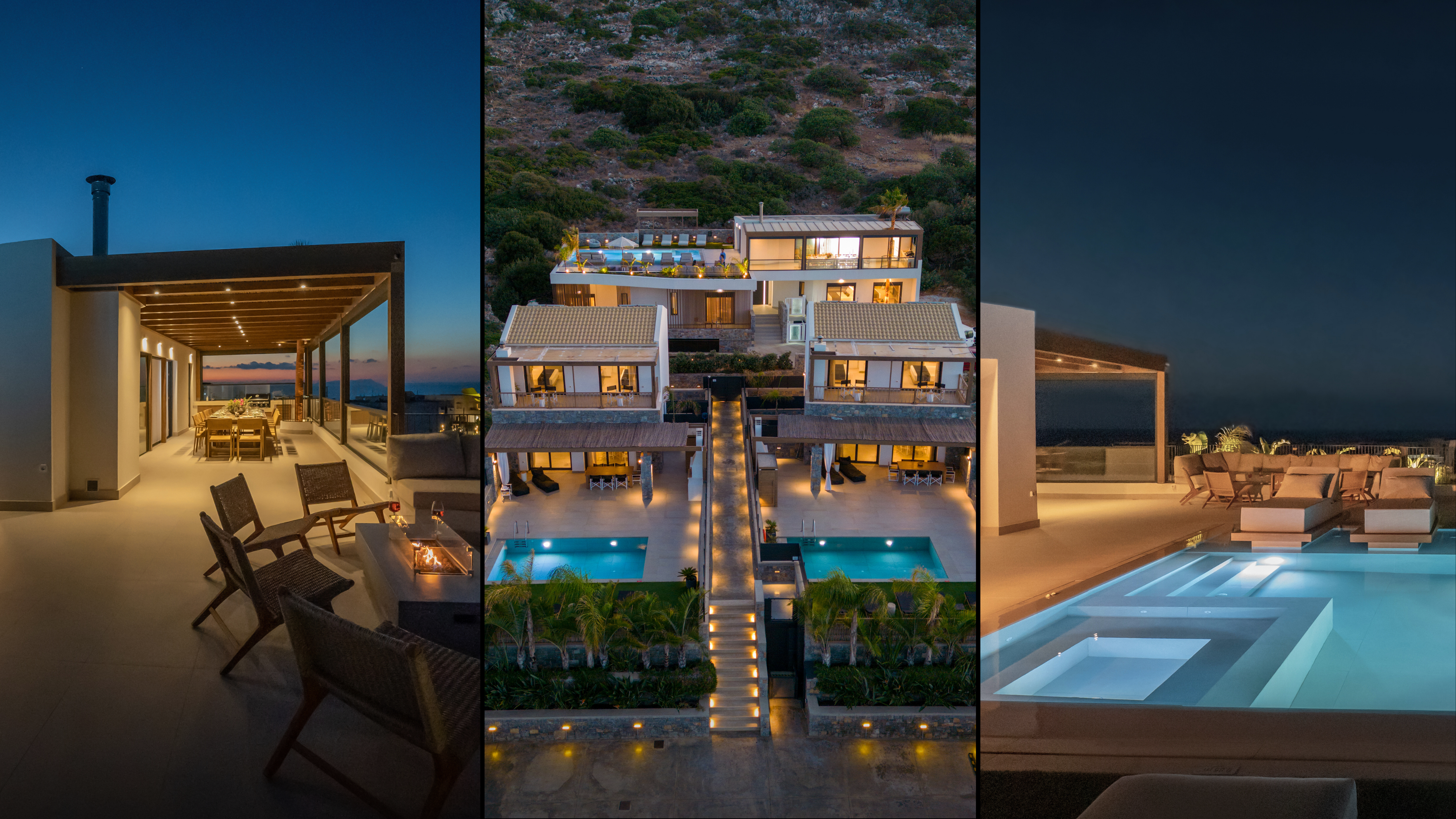 A Private Sanctuary of Space, Wellness, and Panoramic Beauty. Enjoy 390 m² of refined comfort with a private heated pool, gym, sauna, and sweeping views of the Cretan sea and mountains, the ultimate retreat for families and groups.